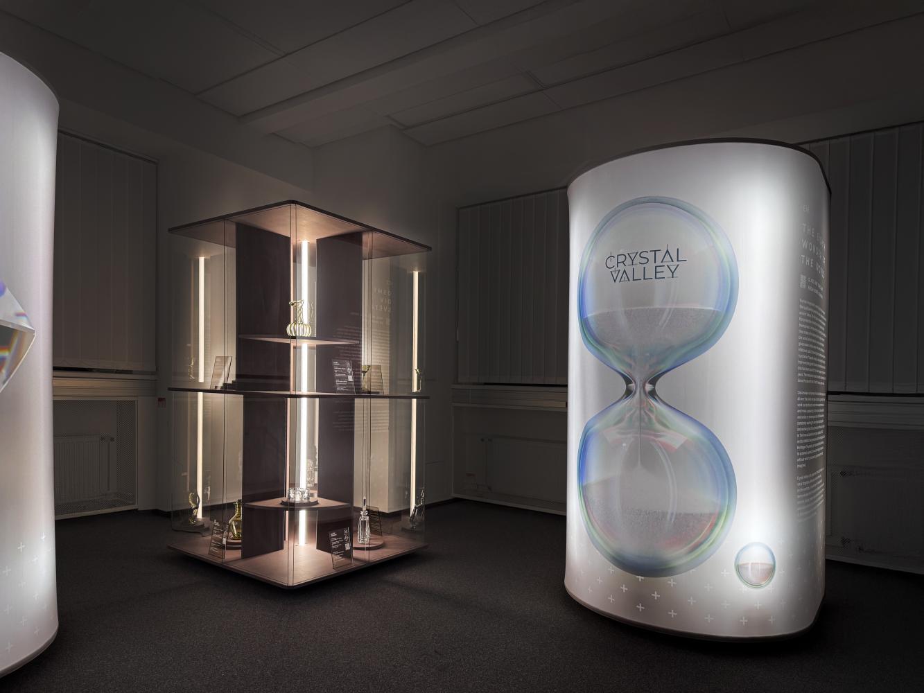 Výstava představuje Křišťálové údolí jako stále živé, pulzující skleněné srdce České republiky. Vedle ruční výroby skla, zapsané v roce 2023 do Reprezentativního seznamu nemateriálního kulturního dědictví lidstva UNESCO, v ní patří nezastupitelná role též automatické produkci a technologickým inovacím, bez nichž si současné sklářství nelze představit.