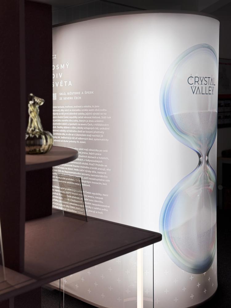 Výstava představuje Křišťálové údolí jako stále živé, pulzující skleněné srdce České republiky. Vedle ruční výroby skla, zapsané v roce 2023 do Reprezentativního seznamu nemateriálního kulturního dědictví lidstva UNESCO, v ní patří nezastupitelná role též automatické produkci a technologickým inovacím, bez nichž si současné sklářství nelze představit.