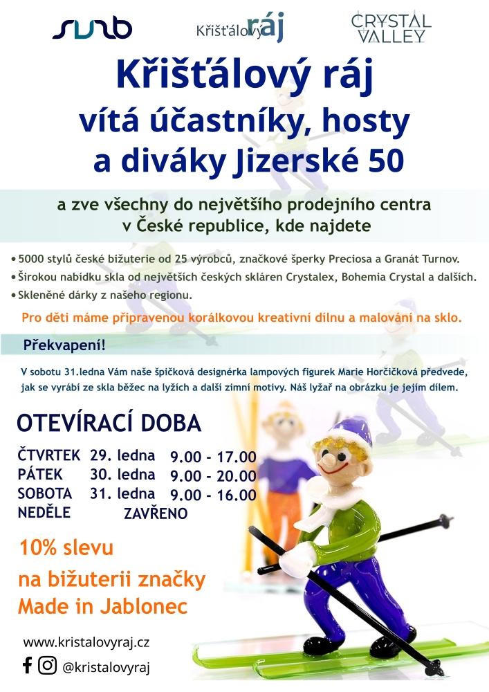 Křišťálový ráj vítá účastníky a diváky Jizerské 50 a zve všechny do největšího prodejního centra v České republice!