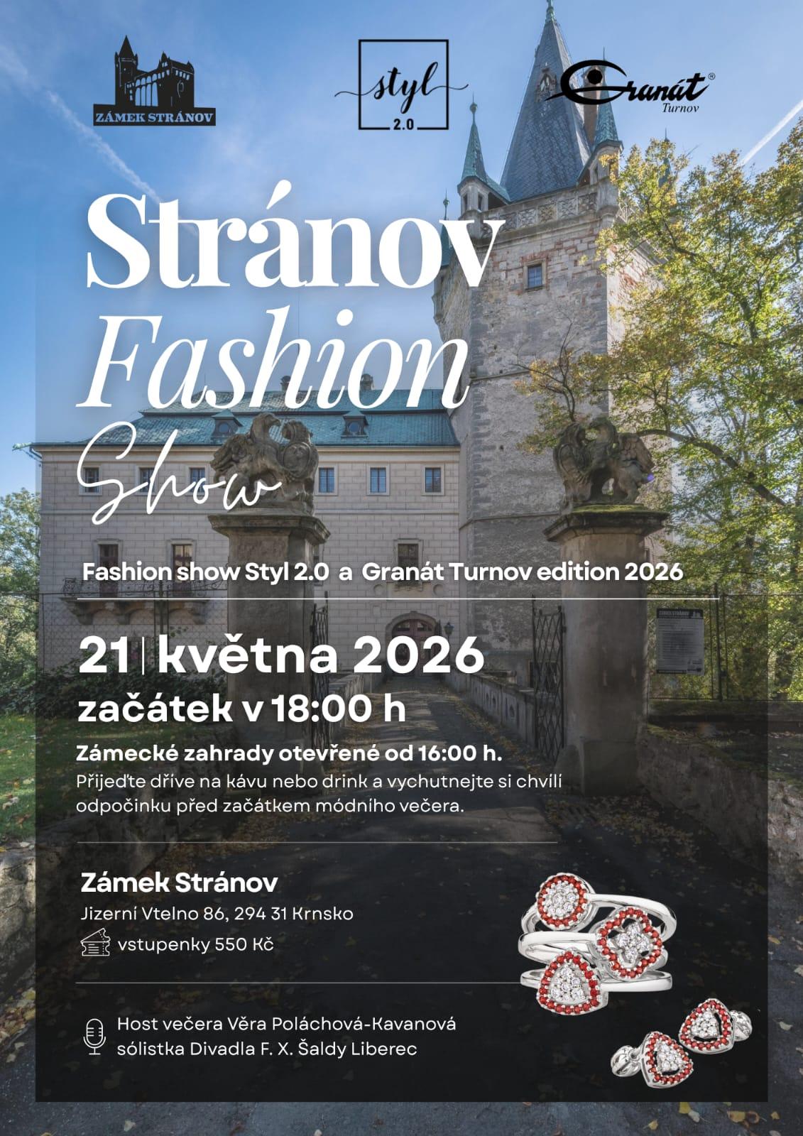 Fashion show Styl 2.0 ve spolupráci s Granát Turnov edition 2026 si pro Vás nachystali večer plný módy a šperku tentokrát v krásných prostorech zámku Stránov.