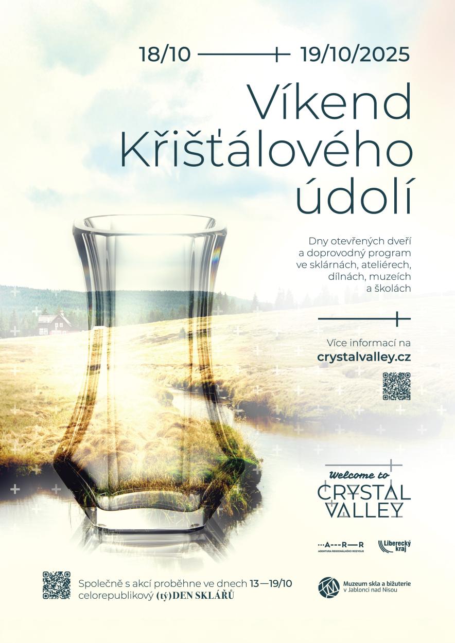 Křišťálové údolí otevírá brány o víkendu 18.-19. 10. 2025. Dva dny otevřených dveří ve sklárnách, ateliérech, výrobních provozech, muzeích a školách.