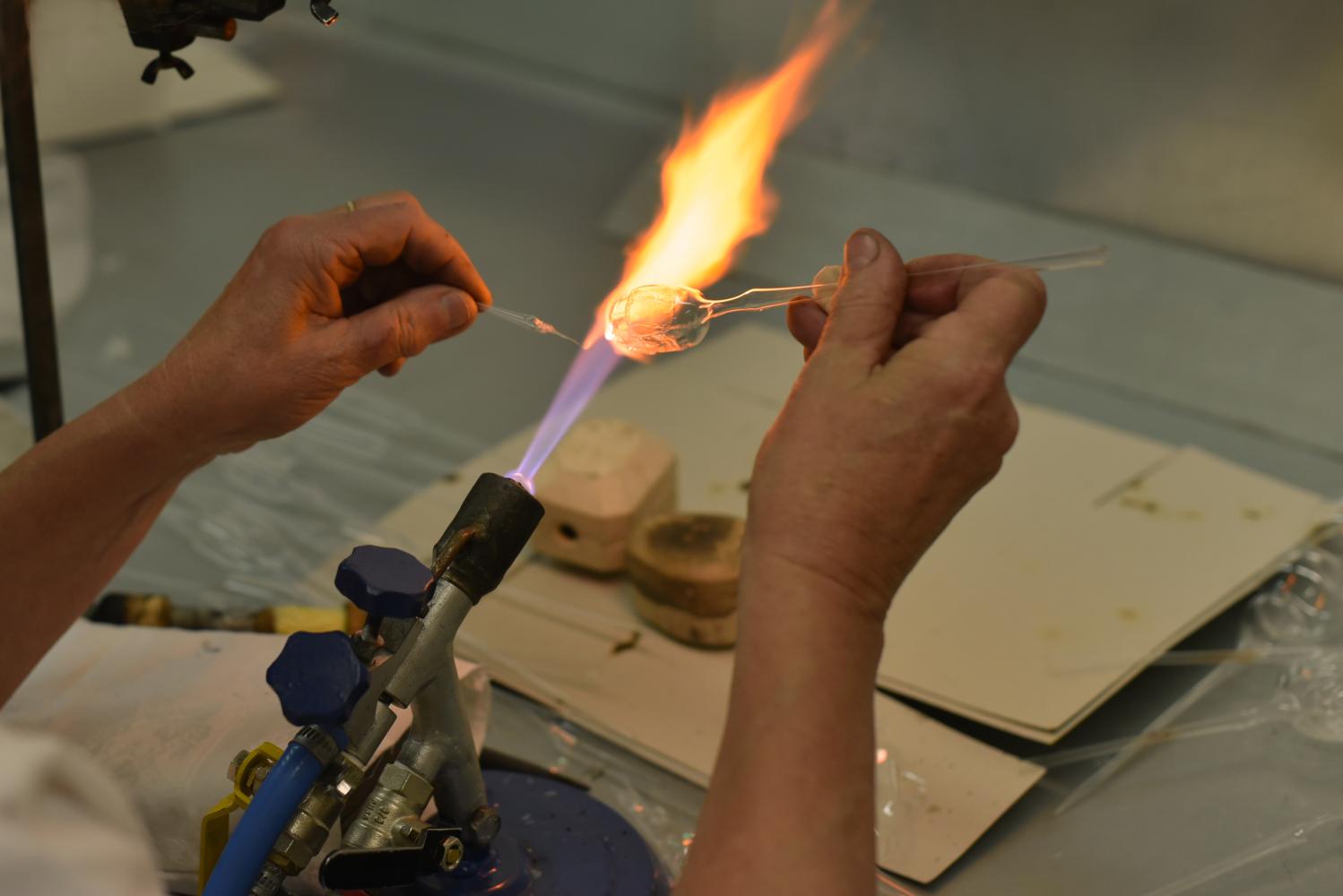 Zažijte tvůrčí atmosféru v našich uměleckých ateliérech - rytí skla, práce u kahanu, spékané sklo, autorské šperky.