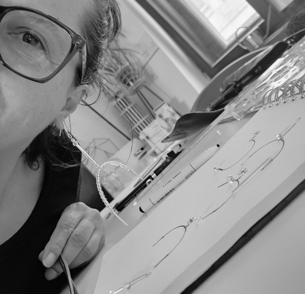 Bižuterní šperk mi dává obrovský prostor pro imaginaci, pro mne typickou neohraničenou kreativitu, experiment a využití materiálů. Mé autorské šperky a doplňky jsou charakteristické hravou estetikou, využívám různé druhy skleněných korálků od regionálních výrobců, se kterými spolupracuji. Geometrizujiící a interaktivní design se objevuje i v limitovaných edicích dekorativních doplňků.