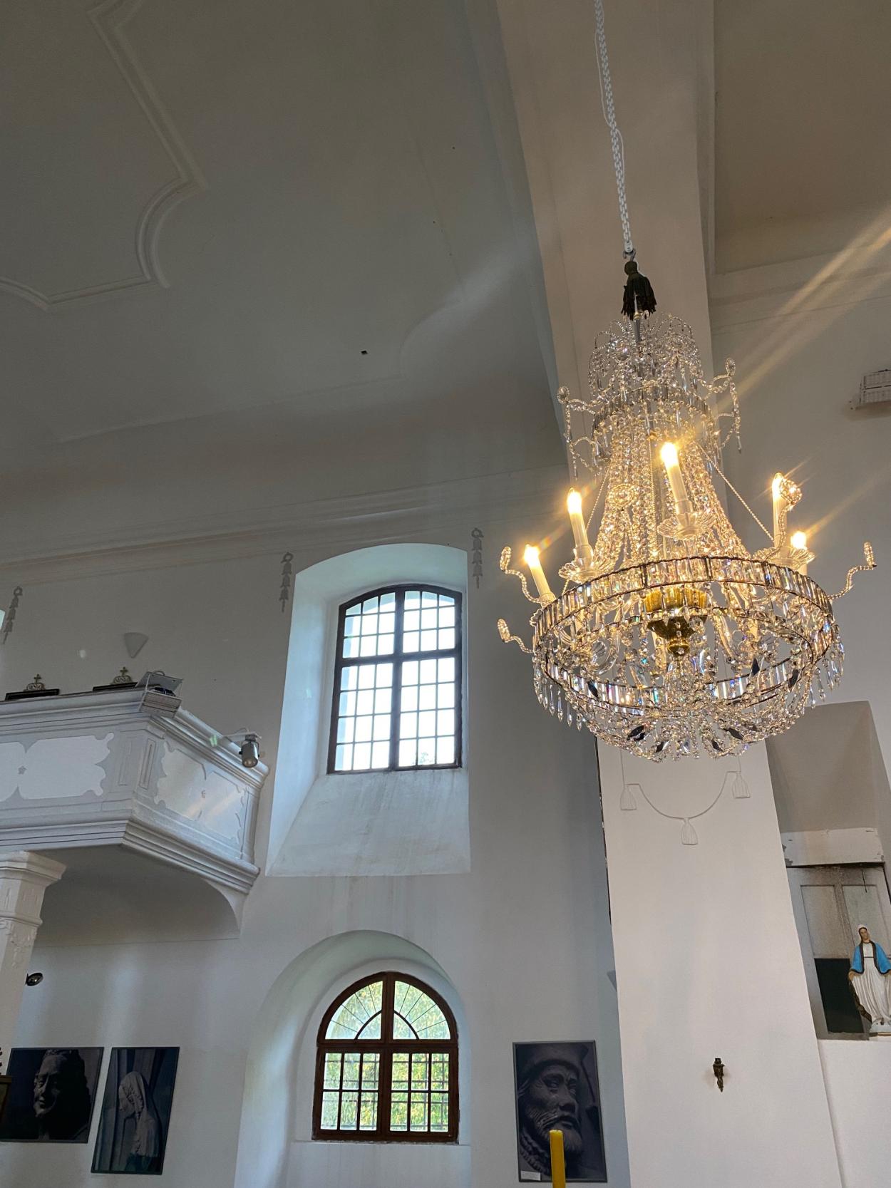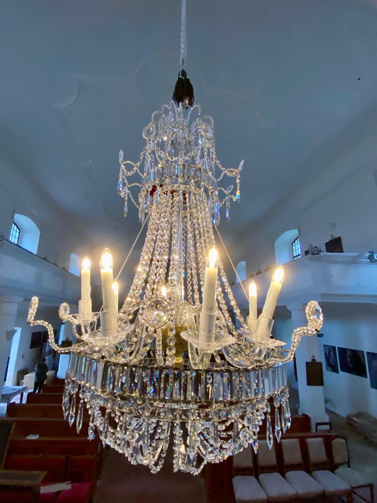 Die Besichtigung der Kirche wird nur die Besichtigung des Kronleuchters beinhalten, eine Videoprojektion des Kronleuchters, der repariert und in die Kirche eingebaut wird.