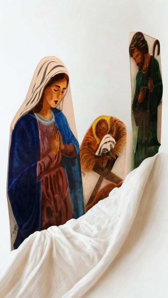 Szklany szopka ma naturalną wielkość 150 x 180 cm.